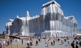 In 1995 Christo and Jeanne-Claude’s Wrapped Reichstag covered the German parliament building in Berlin in aluminium fabric. Photograph: Wolfgang Volz