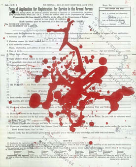 Defaced national military service forms, 1971–72. Archives NZ (LW2612 Box 4 24/1/50).