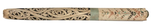 3a. Riwai Pakerau, Ringatu, New Zealand. Heke (date unknown), paint, wood rafter from the meeting house Mauitikitikiataranga [45995]. Auckland War Memorial Museum Tāmaki Paenga Hira.