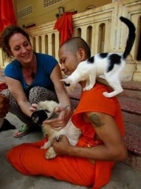 In Cambodia, unwanted animals are left at pagodas for the monks to take care of. An organisation called Siem Reap Pagoda cats works tirelessly to take care of these animals and educates the monks about animal feeding, handling and health care.