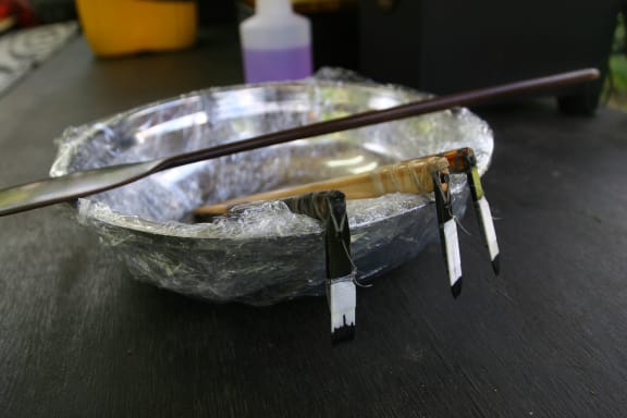 Tatau was once widespread throughout the Cook Islands until the arrival of the missionaries who discouraged the practice. Pictured here are Tetini Pekepo's tools. Photo RNZ/Koroi Hawkins