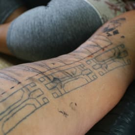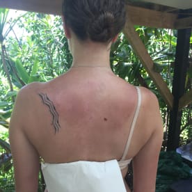 It’s a sensitive spot and the full work, which draws upon traditional Cook Island designs, will require a few more sessions to finish.