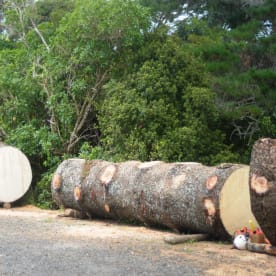 Wood salvaged from once-protected trees has found a new home in an art exhibition to highlight how much wood is being wasted. Nick Holmes is an aborist who uses off cuts to make beehives. Nick and about a dozen others have used unwanted wood, including from a 160-year-old Norfolk Pine that was cut down last year, for a show called A Reverence for Wood.