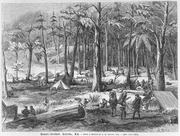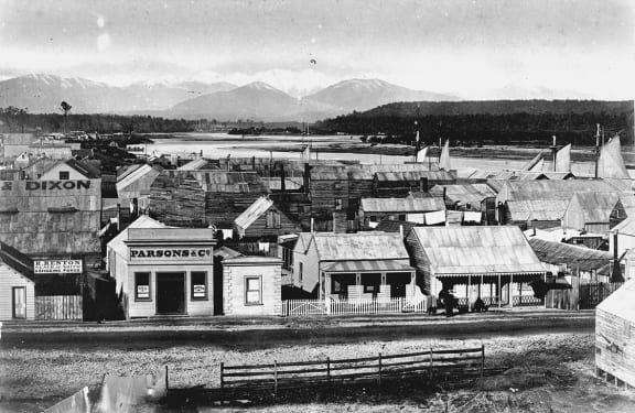 Credit: View of the town of Hokitika with Southern Alps in the background by James Ring, Alexander Turnbull Library, Wellington, Ref. PA7-51-05-1