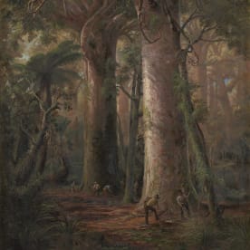 Charles_Blomfield "Scene of Kauri Bush gumdiggers at work". 1892, oil on canvas (PHOTO: All rights Reserved https://www.tepapa.govt.nz/about/media-sales-and-licensing)