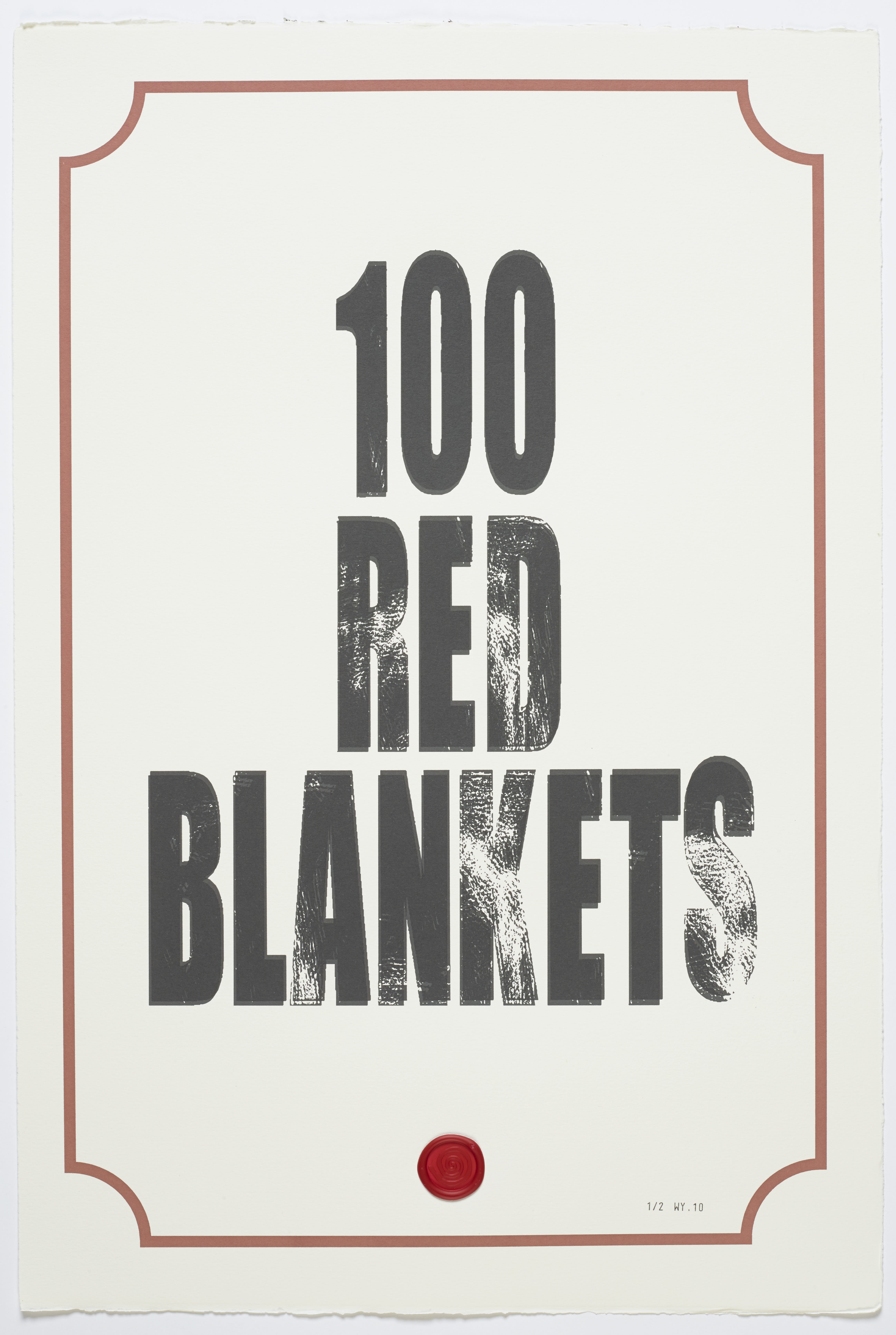 Wayne Youle "What Do You Say Savages 100 RED BLANKETS", 2010, ink and wax on Fabriano Tiepolo paper (PHOTO: All rights Reserved https://www.tepapa.govt.nz/about/media-sales-and-licensing)