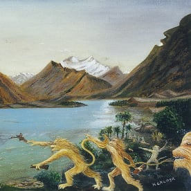 Tony de Lautour "Send off ", 1999, oil and varnish on board (PHOTO: All rights Reserved https://www.tepapa.govt.nz/about/media-sales-and-licensing)