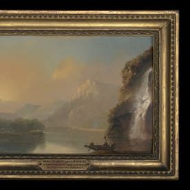 William Hodges "Waterfall in Dusky Bay with Maori canoe", 1776 oil on panel (PHOTO: Maarten Holl)