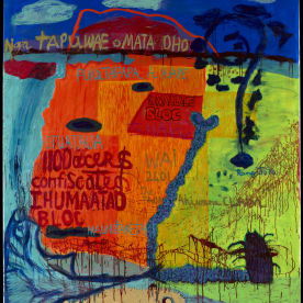 Emily Karaka "Nga Tapuwae o Mataoho", mixed media on canvas (PHOTO: All rights Reserved https://www.tepapa.govt.nz/about/media-sales-and-licensing)