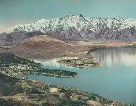 Whites Aviation Queenstown, 1950s, from an album of Whites Aviation hand-coloured views of New Zealand Hand-coloured gelatin silver print, 270 x 355 mm Purchased 1999 with New Zealand Lottery Grants Board funds, Te Papa, O.033079