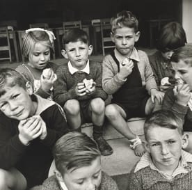 John Pascoe Free apples to school children, May 1944 Modern gelatin silver print by Athol McCredie, 280 x 283 mm Purchased 1985 with New Zealand Lottery Board funds, Te Papa, O.003504