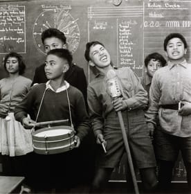 Ans Westra Students performing, Whatatutu Primary School, near Wairoa, 1963 Gelatin silver print, 277 x 276 mm Purchased 2012, Te Papa, O.039574