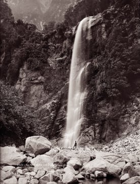 Alfred Burton, Burton Brothers Milford Sound, cascade from Mitre, 1885 Gelatin glass negative, whole plate Te Papa, C.018142