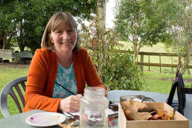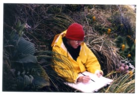 Sandra Morris sketching megaherbs on Auckland Island Subantarctic