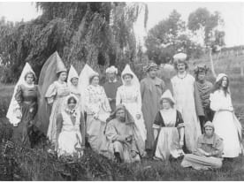Group in costume for the Shakespearean Pageant of November 1912 photograph by Leonard Charles Whitehead (b.1873, d.1960) collection of Hawke's Bay Museums Trust, Ruawharo Tā-ū-rangi, m2004/6/17.