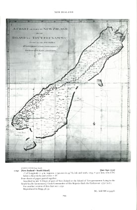 This work, edited by Andrew David, contains a synopsis of the voyage of the Endeavour, descriptions of surveying methods, and biographical details of the surveyors, draughtsmen, and artists on board. Importantly, it contains the 320 charts and coastal views produced on board the ship. To the left are profiles of the ‘Watering Place’ in Queen Charlottes Sound, and to the right is a map of the South Island sketched by James Cook, ably assisted by Isaac Smith (1752–1831). De Beer generously funded the production of this first volume. ________________________________________________________________ The Charts & Coastal Views of Captain Cook’s Voyages. Vol. One. The Voyage of the Endeavour, 1768-1771. Edited by Andrew David. London: The Hakluyt Society in association with the Australian Academy of the Humanities, 1988. Central G420 C65 CF86