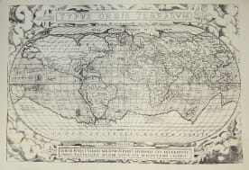 In 1589, Hakluyt produced his The Principall Navigations, Voiages and Discoveries of the English Nation, a folio of over 800 pages. Between 1598 and 1600, he expanded it to a three-volume folio edition, running to over 1.7 million words in about 2000 pages. Principall Navigations was based on original sources and records of explorers and travellers. Indeed, Hakluyt was scrupulous as a compiler, and it is said that he knew every mapmaker, traveller, merchant-adventurer, explorer, and court official from whom he acquired the most up-to-date information. Embedded in this work is a copy of Abraham Ortelius’ famed Typus Orbis Terrarum, a map first published in 1564. A translation of the quote by Cicero reads: ‘Who can consider human affairs to be great, when he comprehends the eternity and vastness of the entire world?’ ________________________________________________________________ Richard Hakluyt, The Principall Navigations, Voiages, and Discoveries of the English Nation. London: George Bishop and Ralph Newberie, 1589; facsimile: Cambridge: Published for the Hakluyt Society and the Peabody Museum of Salem at the University Press, 1965. Special Collections G242 H419 1965