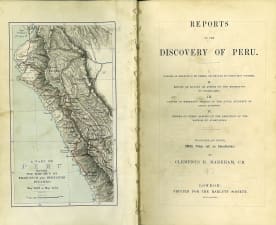 This volume contains first-hand accounts of, what are described as, ‘the most stirring episode in the wonderful history of Spanish conquests’. No doubt, the Peruvian people did not view it as such. The translated words of Francisco de Xeres, Miguel de Astete, Hernando Pizarro, and Pedro Sancho, tell the tale of how Spanish conquistador, Francisco Pizarro (born c. 1471), initiated, what would ultimately become, the decimation of the native peoples of South America. Pizarro and his troops marched down the Peruvian coast at the end of 1532 to Caxamalca (about half way down on the map on display). There they took Incan King, Atahualpa (d. 1533), hostage and killed thousands of Peruvians, all without losing a single soldier. ___________________________________________________________________________ Reports on the Discovery of Peru. London: Printed for the Hakluyt Society, 1872. Journals G161 H2 Ser. 1 no. 47