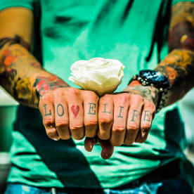 But Stuart told Standing Room Only's Shaun D Wilson that in the last few years he has put all his time, money, and passion into a huge photography project that is gaining him notice around the world: an attempt to capture 10,000 images of people with a single white rose.