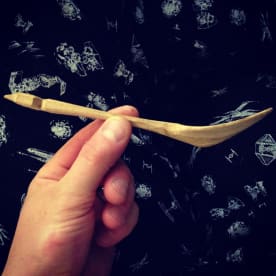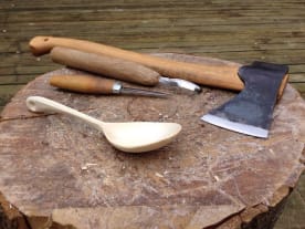 Sam Keer teaches how to carve greenwood spoons at the Wellington’s Community Education Centre.