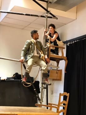 The actors in a new play about two pioneering women mountaineers will be performing up high on scaffolding.