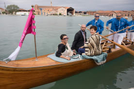 Lisa Reihana and Governor-General, Her Excellency The Rt Dame Patsy Reddy, arrive for the official opening of the NZ pavilion on the Disdotona. Photo: Michael Hall. Image courtesy of New Zealand at Venice.