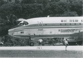 The ZK-NZC DC8 first arrived in 1965 and was used for the Royal Tour to Rarotonga. It's now derelict in Brazil.