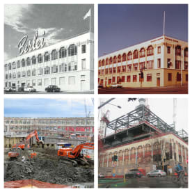 Berlei building on Nelson Street shown top left c.1960, top right c.1980, bottom left in 2016 and bottom right in 2018