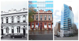 From left to right, Jean Batten State Building 2004, Jean Batten facade 2007, Deloitte Tower atop Jean Batten Facade