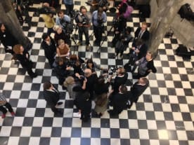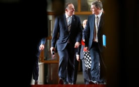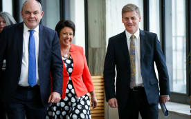 Steven Joyce (left), Paula Bennett and Bill English arriving at the 2015 Budget lock-up at Banquet Hall, Parliament.