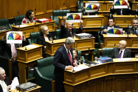 Metiria Turei giving her 2015 Budget Speech to the house, parliament.