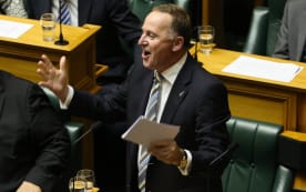 Andrew Little grilling Bill English's 2015 Budget in parliament house.