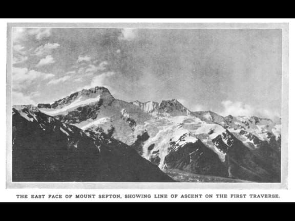 The East Face of Mount Sefton, Showing Line of Ascent on The First Traverse.