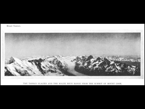 The Tasman Glacier and The Malte Brun Range from the Summit of Mount Cook.
