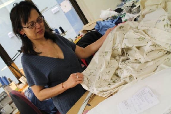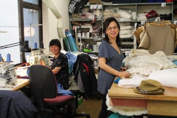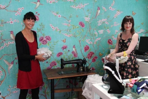 Team work Prida and Lee sew bridal wear at the Voon workshop