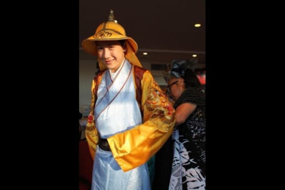 Choreographer Bill Tagupa with flowers for Voon bridal range