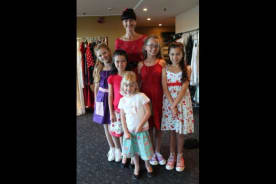 Sophie and the five children modelling Voon day wear: Hazel, Olive, Molly, Summer and Poppy