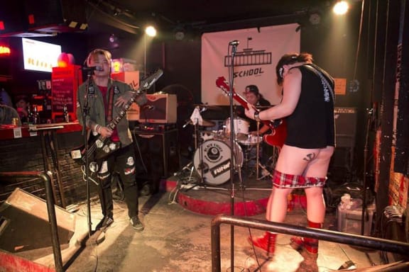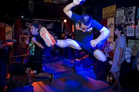 Rambo from The Last Resort does high kicks at the School Bar, a venue in Beijing. Photo courtesy John Lake