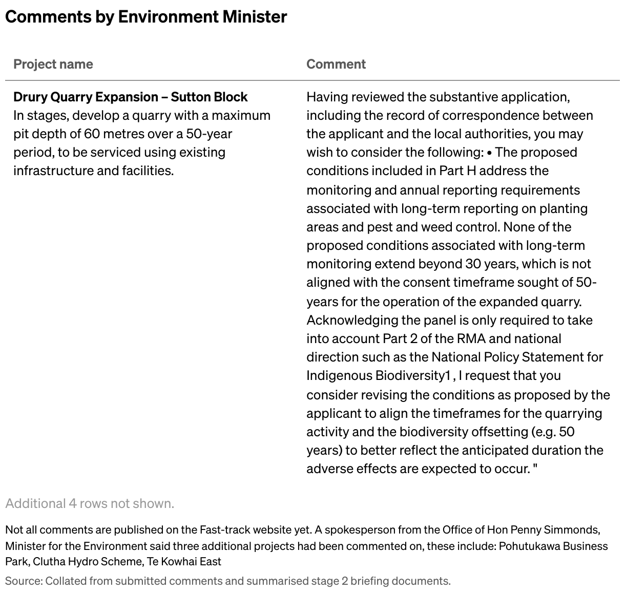The Fast-Track Approvals Act, which is intended to speed up development and infrastructure projects, requires the Environment Minister to be invited to comment on all referred projects, and all substantive applications.