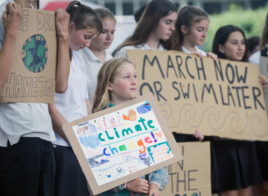 Amelia Foote-Webb, then 9, from Malfroy School at the Rotorua school strike for climate change in March 2019. Photo: Rotorua Daily Post via LDR