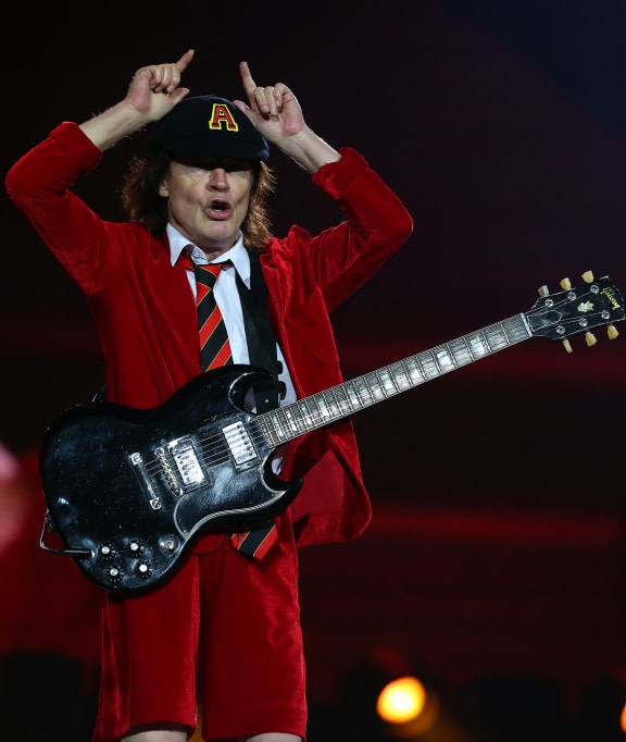 Angus Young in heavy riff mode. Photo: RNZ / Diego Opatowski