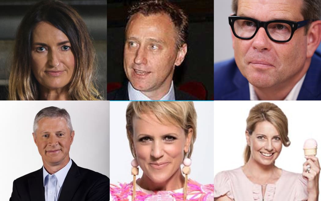 During the reign of Mark Weldon, middle top, a string of high-profile journalists and presenters have left MediaWorks, including, from top right, John Campbell, Carolyn Robinson, Hilary Barry, Mark Jennings and Paula Penfold. Photo: RNZ / SUPPLIED