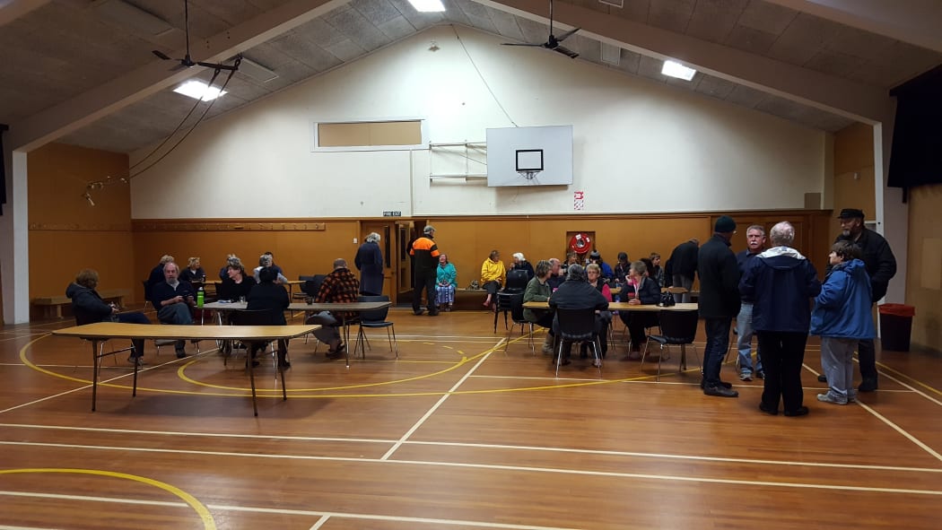 Evacuees at Amberley Pavillion, in North Canterbury, where a community welfare centre was set up in after the midnight earthquake. Photo: Conan Young /RNZ