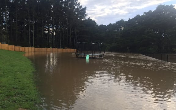 A flooded garden in Kumeu Photo : Supplied