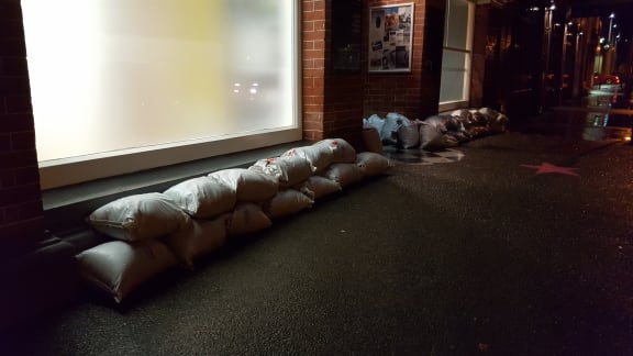 Sandbags on Taupo Quay, Whanganui. RNZ / Robin Martin