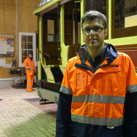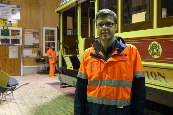 Whanganui Tramways Trust volunteer Kritzo Venter said Tram No 12 would be hoisted out of the way of the floods. RNZ / Robin Martin