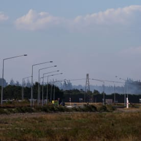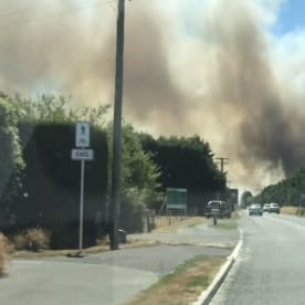 Smoke seen near the fire in Rolleston. Photo: Ashburton TV