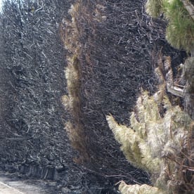 The fire tore through windbreak hedges, making it hard for firefighters to get close. Photo: RNZ / Conan Young