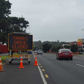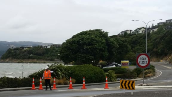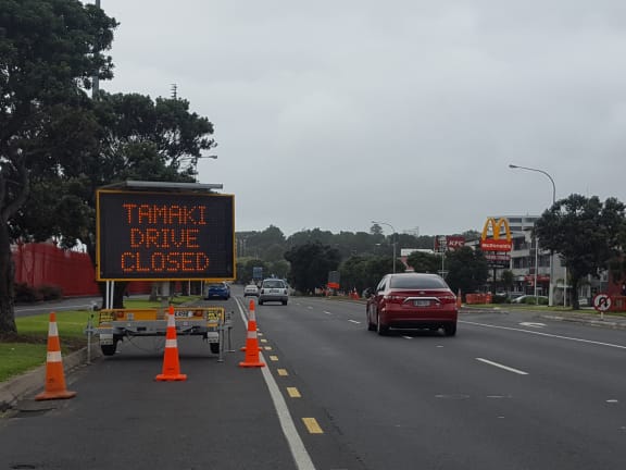 Tamaki Drive in Auckland is closed. Photo: RNZ / Sally Murphy