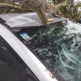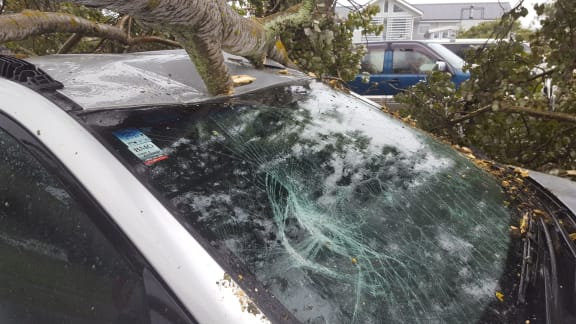 RNZ Nelson reporter Tracy Neal's car has been a casualty of the storm.Photo: RNZ / Tracy Neal